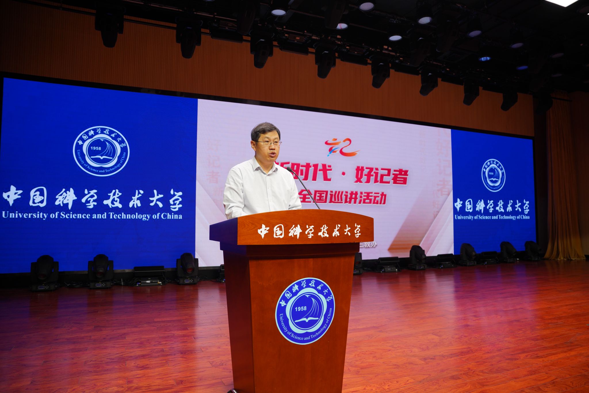 为深入学习贯彻习近平文化思想、深化马克思主义新闻观教育,3月31日上午,由中国记协、全国三教办组织开展的“新时代·好记者”全国巡讲活动在我校西区学生活动中心二楼大礼堂举办。校党委副书记邓建松会见宣传团成员并主持报告会。校党委宣传部常务副部长朱霁平、科技传播系执行主任周荣庭、校党委宣传部副部长范琼及中国记协、安徽省委宣传部有关同志出席活动。我校部分学生宣传骨干及500余名师生代表参加活动。