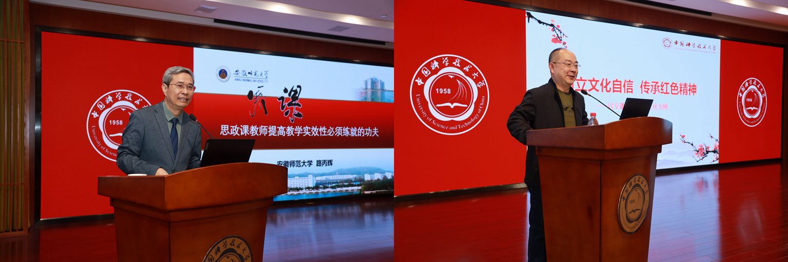在专题报告环节,安徽师范大学马克思主义学院教授路丙辉作题为《养课:思政课教师提高教学实效性必须练就的功夫》的辅导报告。马克思主义学院钱斌教授作题为《树立文化自信 传承红色精神——以安徽的历史与文化为例》的辅导报告。