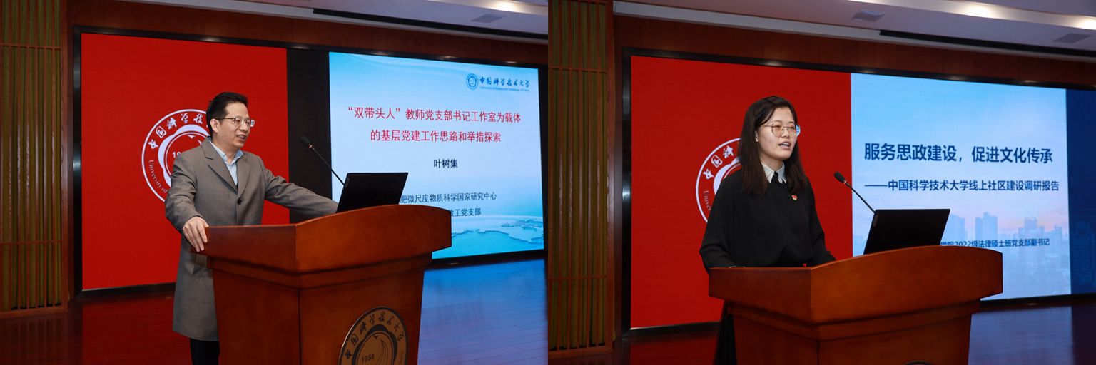 大数据学院曹倩、公共事务学院陈玉慧、合肥微尺度物质科学国家研究中心叶树集、公共事务学院孙慧玉、管理学院苟清龙等5位论文作者作党建优秀成果交流发言,党委组织部李晗、档案文博院方黑虎、兰荣、离退休干部处姜迪、国家同步辐射实验室余芹等5位论文作者作党建立项课题交流发言。专家对交流报告作了精彩点评。