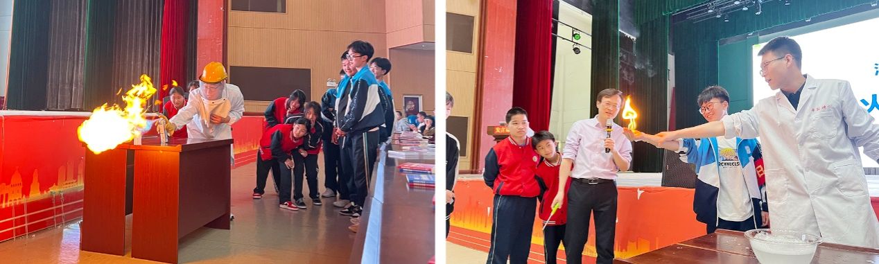 在科普报告环节,纪杰教授以近期的火灾案例为切入点,阐述了提高消防安全意识和掌握火灾知识的必要性。他带领大家穿越时空,从“火、灾、灭”等汉字的起源与火的关系开始,讲到人类早期的用火史,再到建筑火灾、森林火灾、工业火灾中的一系列典型火行为——轰燃、回燃、火旋风、爆发火、多火焰融合、火烧连营等,用通俗易懂的语言阐述了这些火行为背后蕴含的科学原理。报告巧妙地融入了一系列趣味知识点,如苏东坡的防火专家身份、故宫太平缸下的暗格之谜、电影中“汽车事故后烟头引起爆炸”场景特效的实验证伪、火焰在钢琴曲的“指挥下”翩翩起舞等。报告内容激发了同学们强烈的好奇心,以趣味十足的讲解方式高效地传播了火灾科学知识。