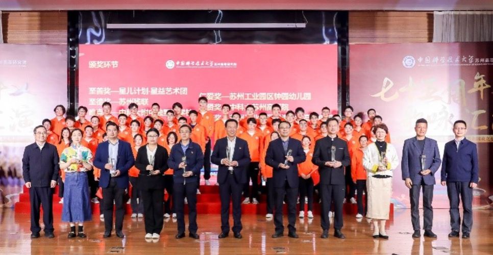 活动分设至善、至德、仁爱、亲民、明德、唯真、敏学、知行、思贤等奖项,演出结束后,苏州高等研究院党委常务副书记、副院长屠兢,苏州高等研究院科研部部长李俊共同为参演单位代表颁发了奖杯和证书,整场活动在热烈的气氛中圆满结束。