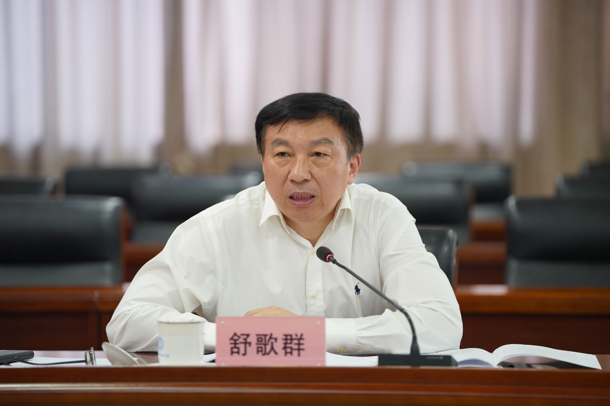 5月20日下午,校党委理论学习中心组在东活五楼报告厅召开2024年度第八次集中学习会。校党委书记舒歌群主持会议,校长包信和及在校校领导,党委委员、纪委委员,党群部门主要负责人,研究生院、教务处、马克思主义学院、基础教育集团主要负责人参加会议。