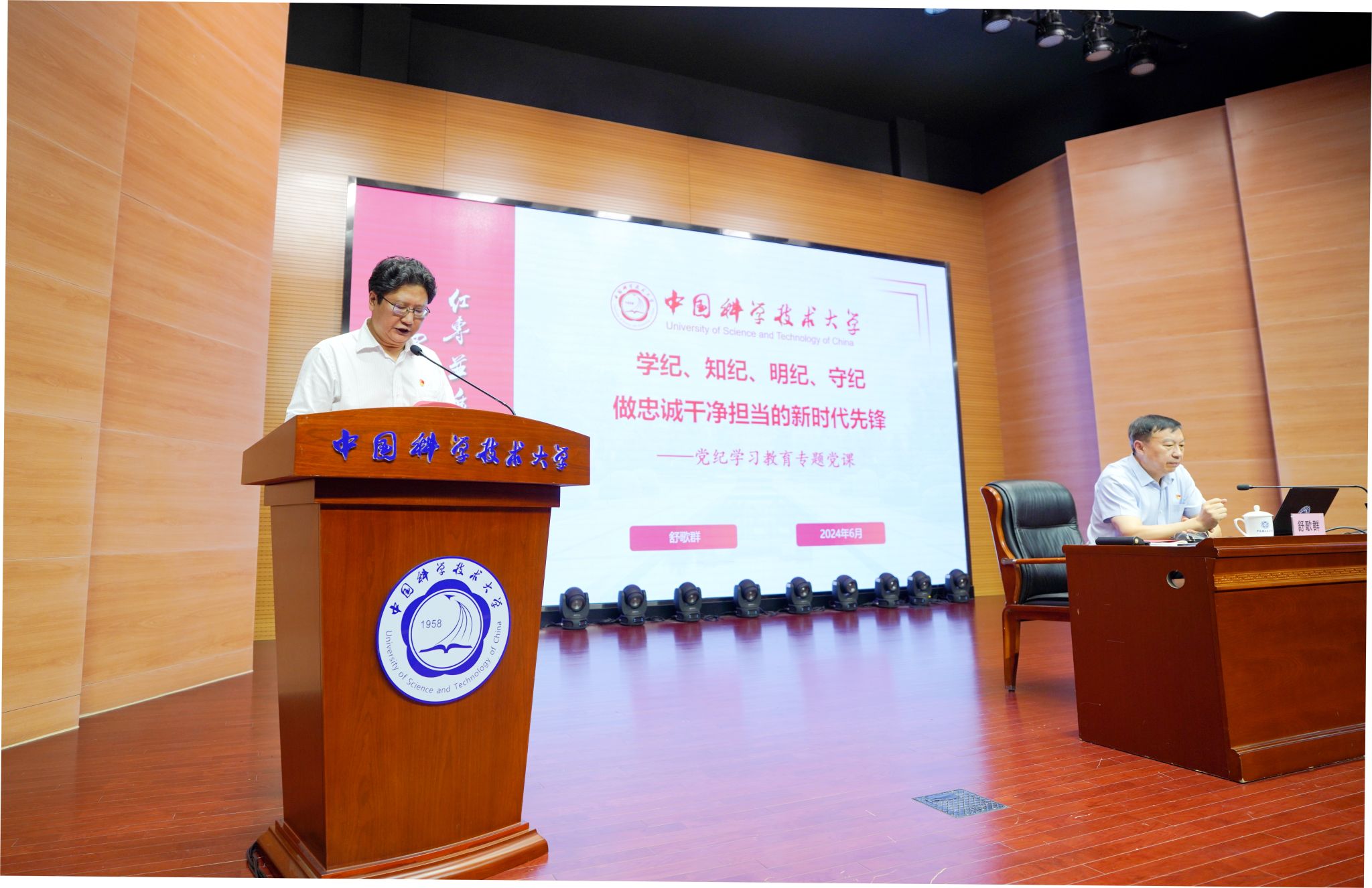 蒋一在主持时指出,舒歌群书记的党课报告为学校深入开展党纪学习教育提供了切实指导,为各基层党组织书记讲纪律党课做了良好示范。当前,党纪学习教育渐入尾声,各党支部书记要按照上级规定的时间和要求高质量完成讲纪律党课。党员、干部要深入学习领会习近平总书记关于全面加强党的纪律建设的重要论述,从理论源头加深理解和加强把握。广大师生要切实把学习成果转化为推动学校事业高质量发展的工作动力,潜心立德树人、执着攻关创新,为加快推进中国特色、科大风格的世界一流大学建设贡献力量。