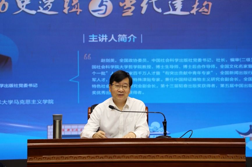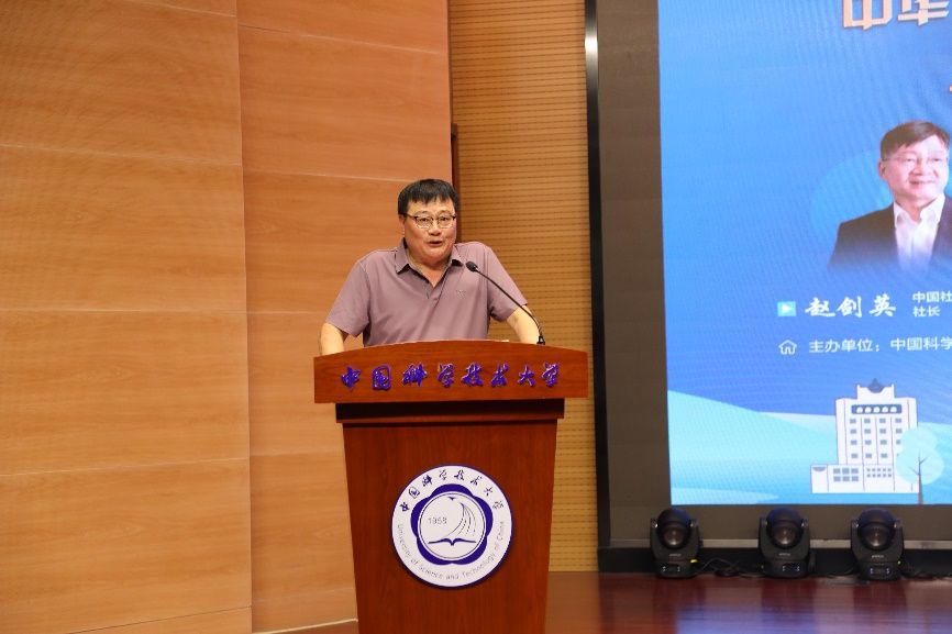 6月26日下午,中国科大“理实交融”马克思主义理论学科系列讲座在东区水上报告厅举行,中国社会科学出版社党委书记、社长赵剑英教授应邀作《中华文化主体性的历史逻辑与当代建构》专题报告。马克思主义学院执行院长刘立、党总支书记杨保国、副院长汤俪瑾,学院思政课教师和研究生参加报告会。报告会由刘立主持。