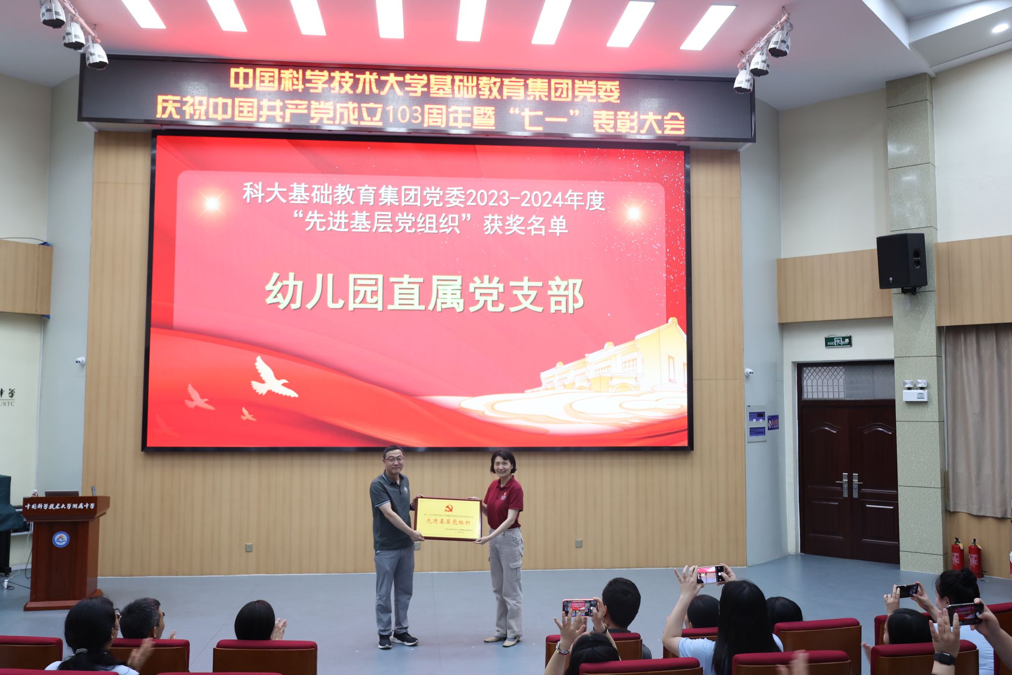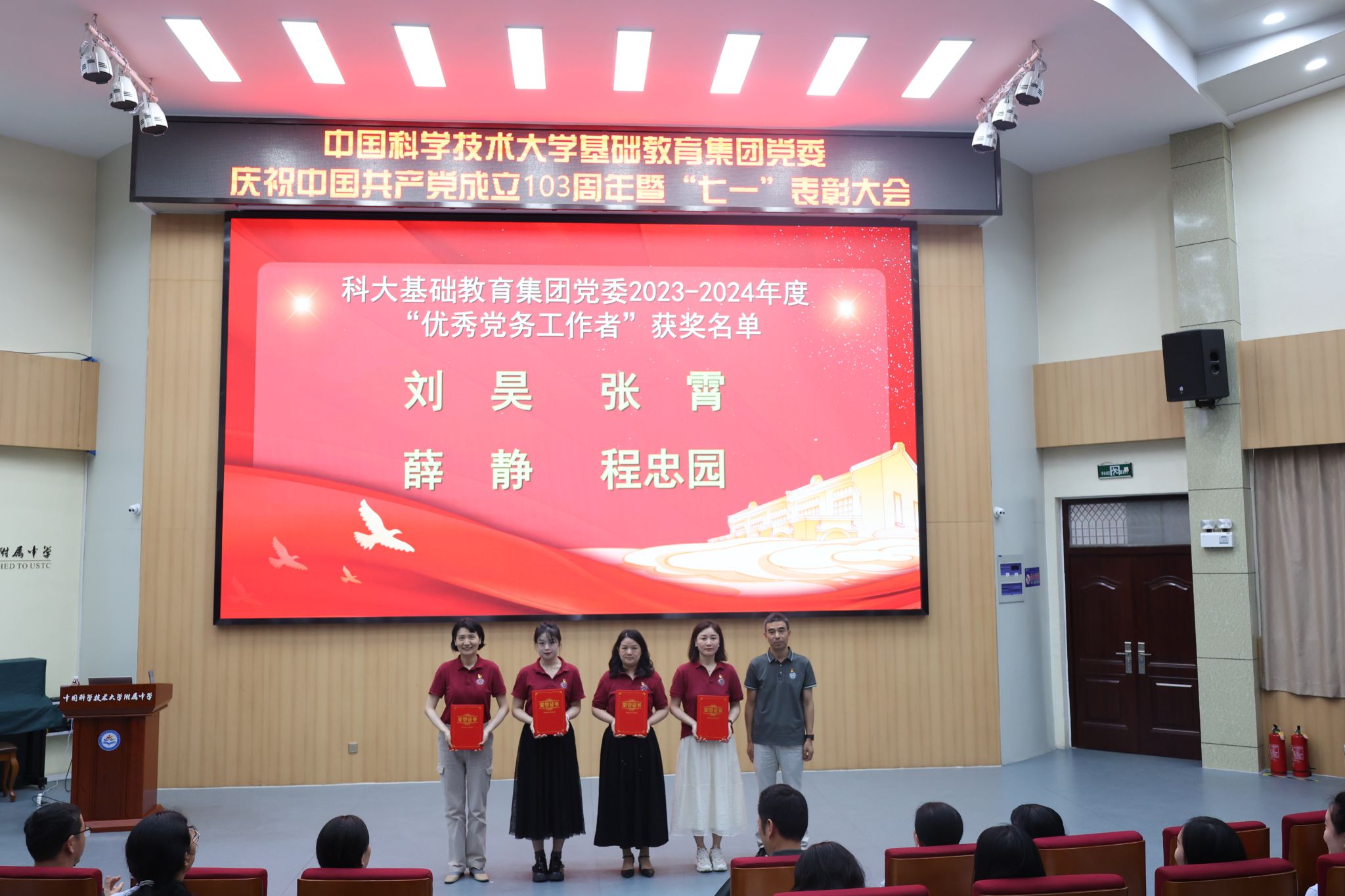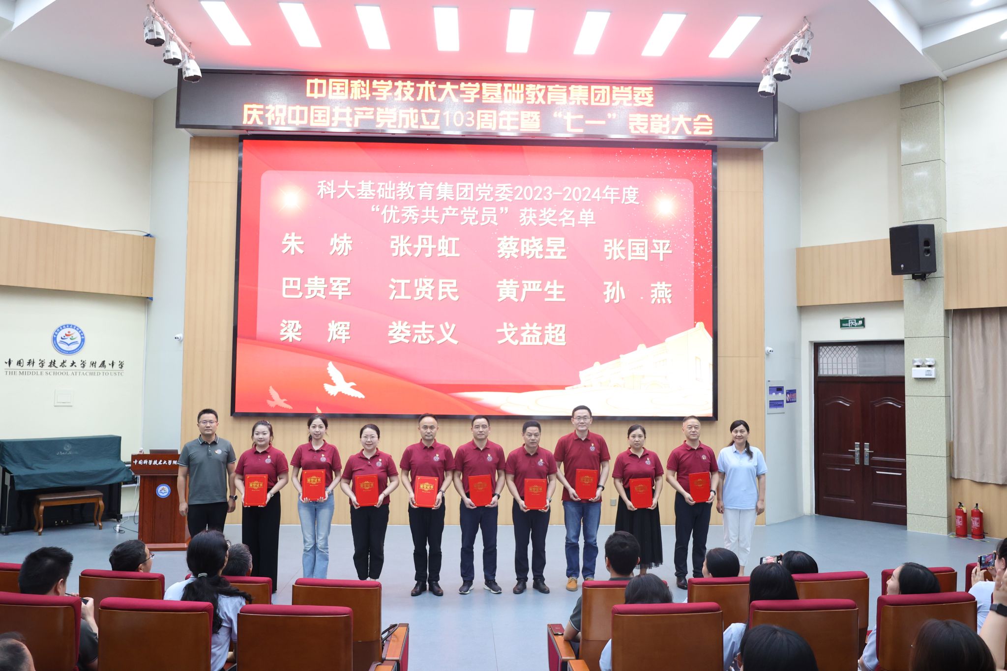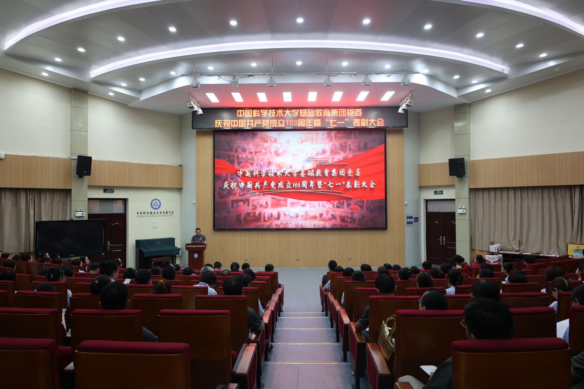 在中国共产党成立103周年之际,为表彰先进、弘扬正气,激励广大党员和各基层党组织奋勇争先、建功立业,同时也为了进一步推动党纪学习教育走深走实,科大基础教育集团党委于7月1日下午在科大附中报告厅举办“七一”表彰大会暨党纪学习教育专题党课报告会。