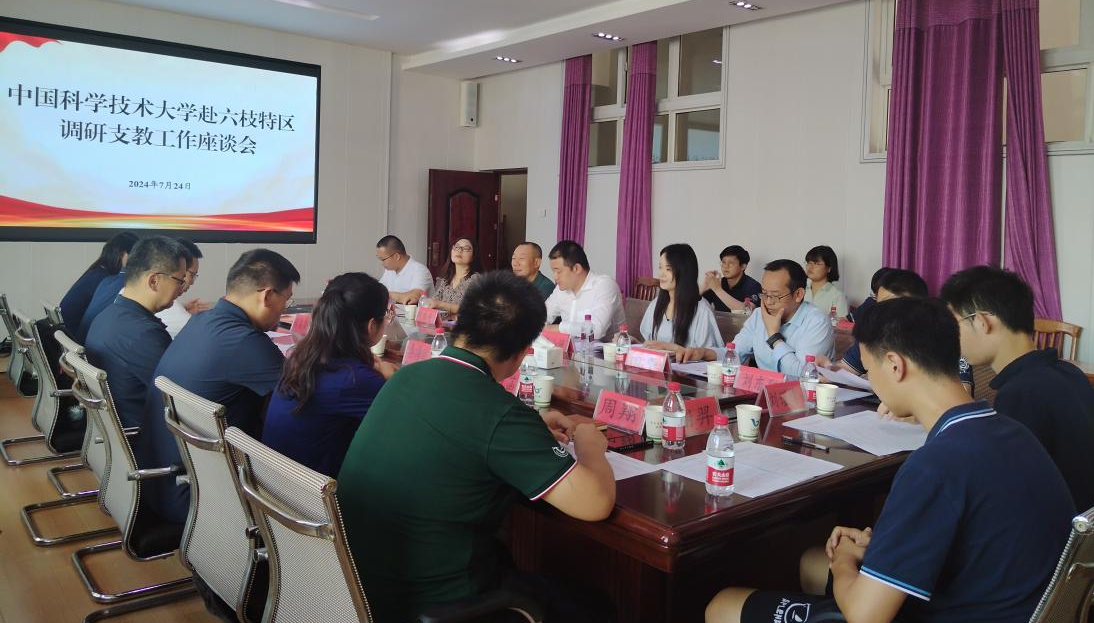 支部共建座谈会由学校选派帮扶干部、六枝特区人民政府副区长夏晶主持。校团委书记、团委党支部书记千坤致辞,他对六枝特区团委、六枝三中等部门单位一直以来的支持和帮助表示感谢,并对第26届研究生支教队贵州分队提出“坚守初心、勇担使命”的期望,强化“科技支教”理念和“锤炼自身,善于沟通”的要求。团六枝特区委副书记杨小慢围绕支部共建、研支团的服务与管理等方面发言,希望通过校地合作进一步引领青年学生投身乡村振兴国家战略。六枝特区第三中学校长耿小莉对我校支教工作表示感谢,并围绕研支团工作、生活保障等方面发言。中国科大研究生支教团第26届支教队贵州分队队长刘谨鸣作表态发言,表达投身科技支教事业的决心。