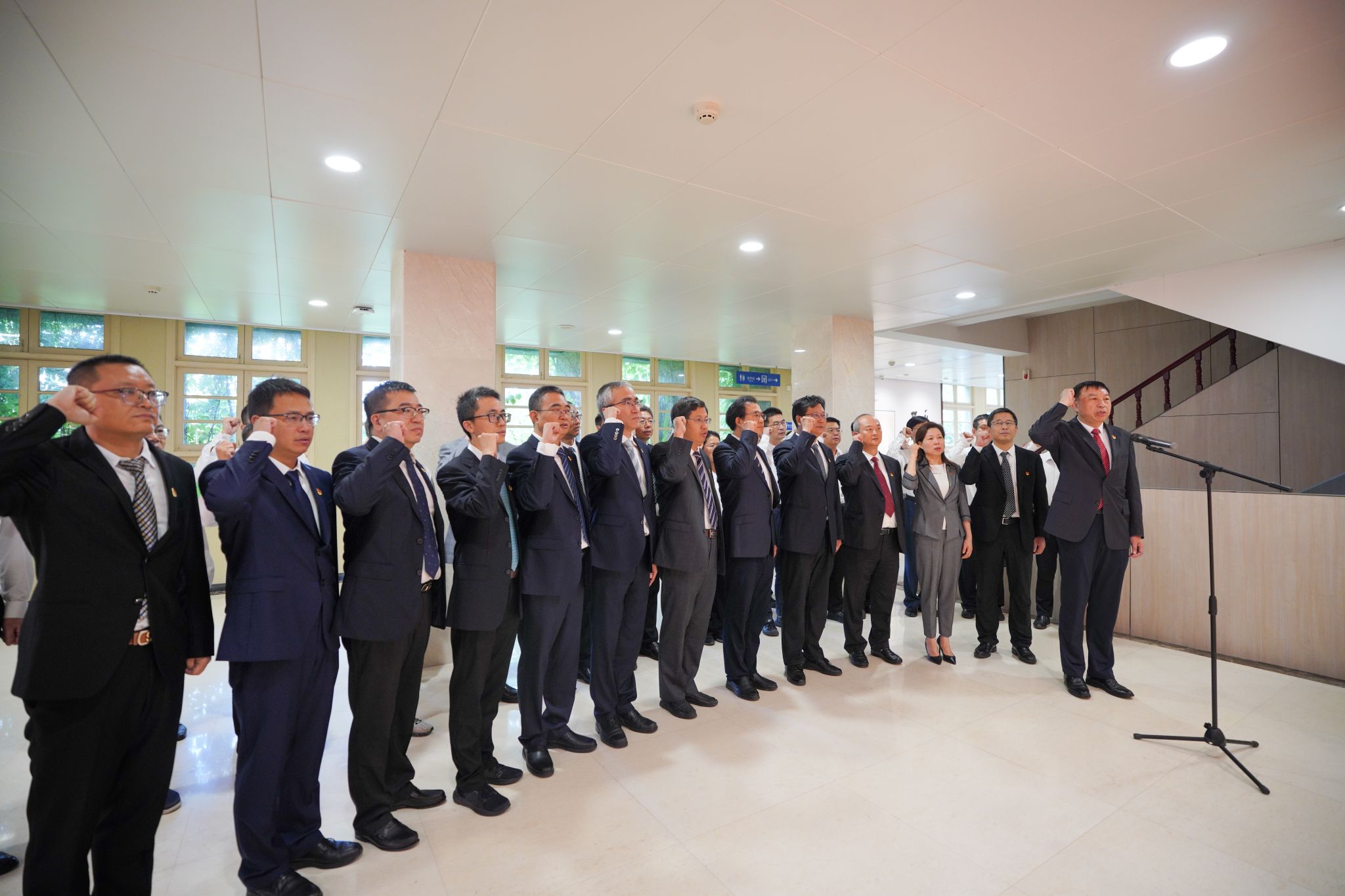 会后,校领导和新一届两委委员来到东区校史馆,集体参观“红专并进、科教报国”中国科学院党员主题教育基地。全体两委委员集体肃立,面向党旗一起重温入党誓词。在舒歌群同志领誓下,全体同志举起右拳,庄严宣誓。