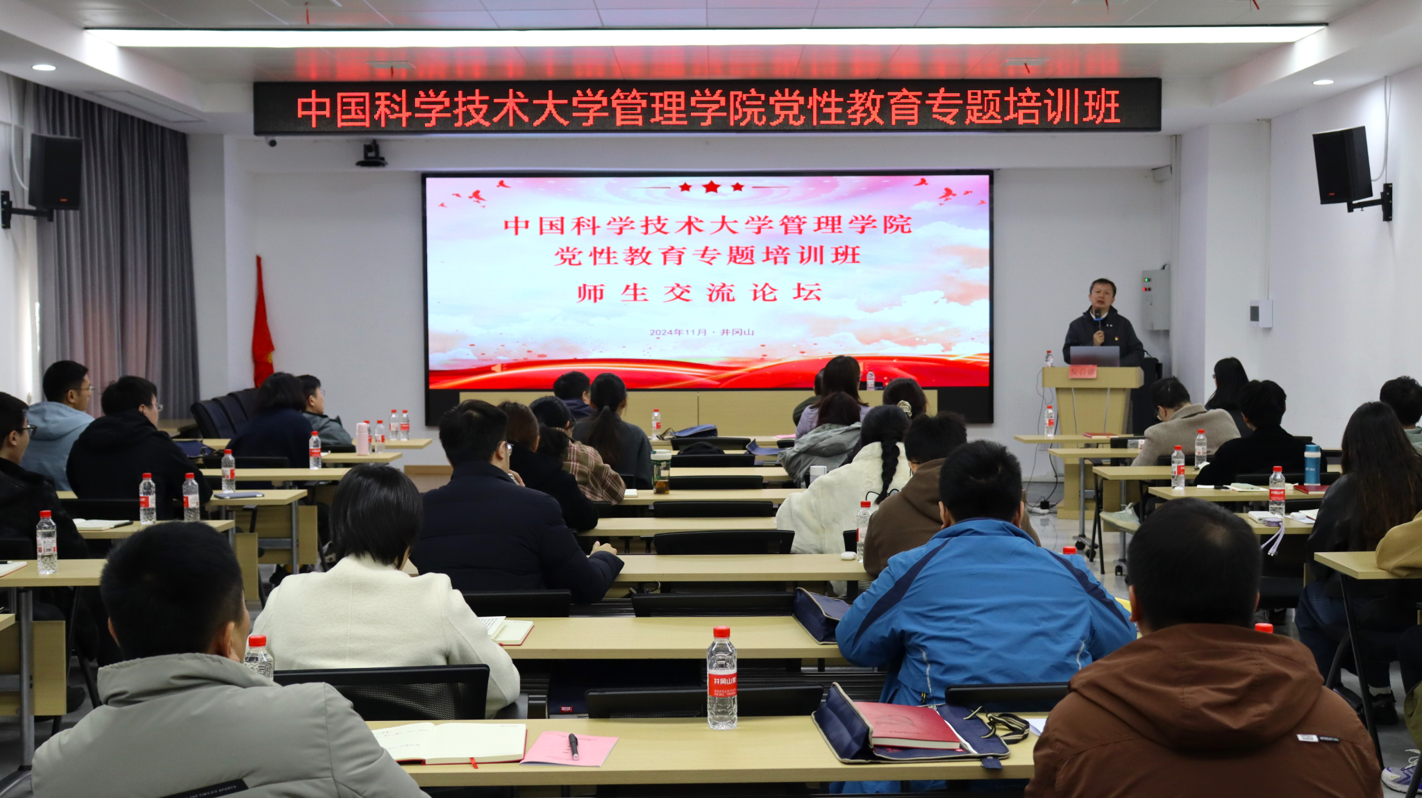 中国科大管理学院、科技商学院执行院长,国际金融研究院院长叶强教授作开班式动员讲话。他指出,管理学院一直致力于培养高素质复合型管理英才,始终将党性教育作为提升师生思想政治素质、增强责任感和使命感的重要途径。近些年,在校党委的领导下,学院在人才培养、科学研究、改革发展等方面取得了一系列成绩,这离不开始终坚持的党性教育和红色文化传承。此次井冈山党性教育培训班,正是学院在新时代背景下,进一步加强党性教育、传承红色基因的重要举措。他围绕“深化理论学习,提升政治站位;强化党性锤炼,坚定理想信念;理论联系实际,提升能力素质”对师生提出了期望和要求。