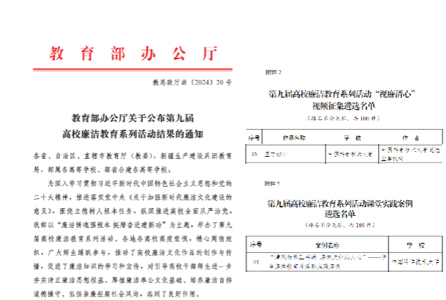 我校大学生廉洁教育案例入选教育部第九届全国高校廉洁教育系列活动遴选名单