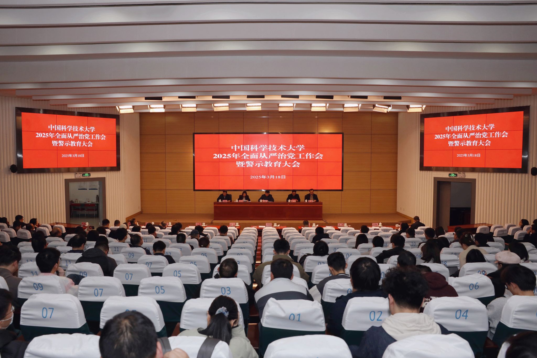 3月18日下午,学校在东区理化大楼东三报告厅召开2025年全面从严治党工作会暨警示教育大会。校党委书记舒歌群主持会议。在校校领导,校党委、纪委委员,全体中层干部,院级党组织纪检委员、师生党支部书记代表、离退休党员干部代表,科研骨干代表参加会议。