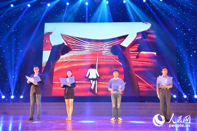 中国科大的同学表演配乐诗朗诵《誓言》 (人民网 金晨摄)