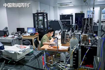 近代物理系博士生丁哲,用低温AFM进行二维材料表面磁性测量。图|《中国新闻周刊》记者甄宏戈