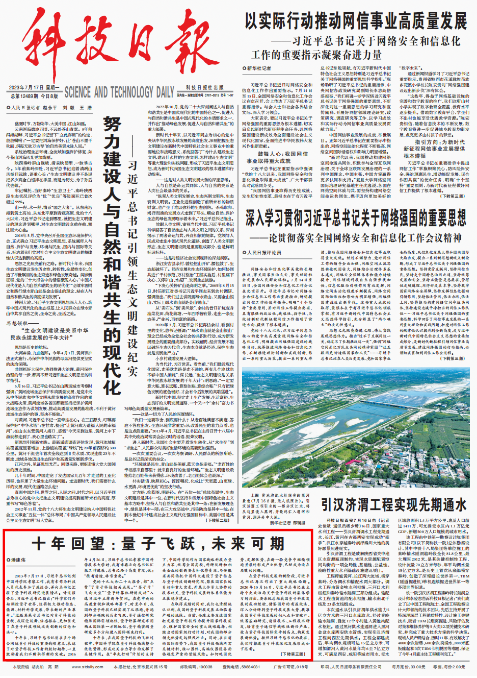 2013年7月17日,习近平总书记到中国科学院考察工作,我有幸作为科技人员代表参加了座谈会,并向总书记汇报了量子科技研究进展情况。听过报告后,习近平总书记指出:“科学家们开始调控量子世界,这将极大推动信息、能源、材料科学发展,带来新的产业革命。”近距离感受总书记对量子科技的重视,我深受鼓舞、倍感振奋,更加坚定了在量子科技领域攻关创新的信念和决心。