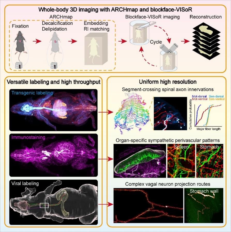 在生物体内,一张由亿万周围神经纤维编织成的精密“生命物联网”无处不在,承载着大脑与全身器官的双向通讯,调控运动、感觉以及内脏功能。然而,看清这张网络的全貌却极其困难——神经纤维直径仅为发丝几十分之一,蜿蜒交织遍布全身。长期以来,受限于成像速度与分辨率矛盾,“如何同时‘看得清’单根神经纤维,又能‘看得全’全身神经网络的整体构架”,是神经科学领域悬而未决的技术难题。