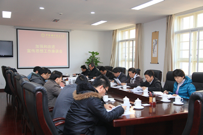 1月22日下午,校党委在208楼三楼会议室召开加强和改进宣传思想工作座谈会。校党委书记许武、校党委副书记叶向东、蒋一出席会议。会议由党委常委、副校长陈晓剑主持。校党政办、组织部、宣传部、学工部、教务处、研究生院、人力资源部、工会、团委等单位负责人参加了会议。