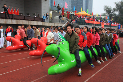 本届运动会为期两天,除了传统田径项目以外,今年的运动会还新增了脚踏实地、旱地龙舟、击鼓颠球、篮球投篮、50米往返跑等多个趣味比赛项目,引起广大师生踊跃参与。
