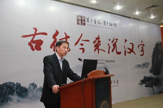 11月2日下午,中国文字学会会长、安徽省文史研究馆馆长黄德宽教授应邀在中国科学技术大学东活五楼报告厅作题为《古往今来说汉字》的主题报告。本次活动由我校图书馆英才论坛主办,图书馆直属党支部书记兼副馆长汪忠诚主持了报告会。