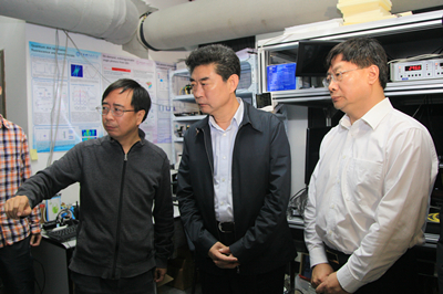 会后,邓向阳部长一行在许武书记等陪同下,参观了我校量子物理与量子信息研究部实验室、核探测与核电子学国家重点实验室,听取研究人员对研究方向、实验室人才建设、研究进展、国际影响等方面的介绍。