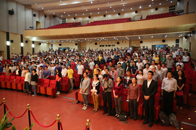 “又红又专,理实交融,团结互助,活泼英勇,永远向人民学习,学习伟大领袖毛泽东……”典礼最后,全场师生齐唱科大校歌《永恒的东风》。苏研院2014级新生将从这里出发,继承中国科大科教报国精神传统,开启人生新的一页!