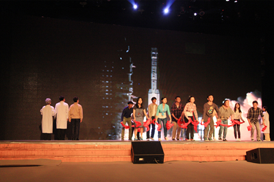 9月3日晚,“2014年校园大舞台——徽风皖韵进高校活动”在我校东区大礼堂举行,由我校原创的音乐剧《爱在天际》精彩上演,省委常委、宣传部长曹征海,中国科大党委书记许武,省直相关部门负责人,在肥部分高校负责人及师生代表1500余人观看了演出。