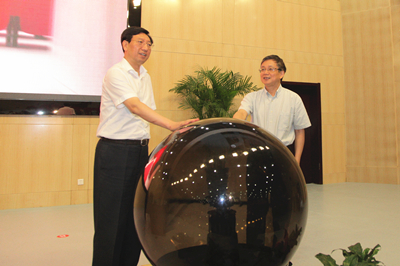 签约仪式上,曹征海部长与侯建国校长共同点亮启动球,为中国科大——皖新传媒新媒体研究平台揭牌。