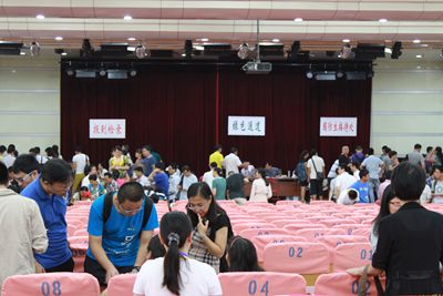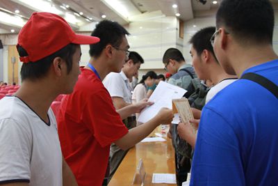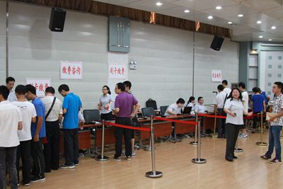 今年的新生报到点分为东、西两个校区,新生和家长无需在校区之间奔波。入学程序进一步简化和高效是今年迎新工作的一大亮点。在东、西区报到点,报到检录处、绿色通道、缴费处、各院系报到处、国防生报到处等标志醒目,秩序井然,均没有出现排长队的情况。据现场工作人员介绍,今年的入学现场手续只有两个环节,新生先凭录取通知书到报到检录处打印报到流程单,然后去院系报到处领取材料、去现场缴费处完成费用缴纳即可,平均5分钟就可以完成报到手续。