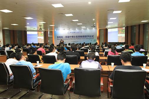 授予仪式结束后,苏布拉·苏雷什校长为我校师生做了题为“跨越工程学、科学与医学的交汇点研究人类疾病”的学术报告。他借助显微镜录像、照片等方式,从细胞生物学、病理学、工程学角度生动地展示了人类红细胞的病变过程,启发大家用多学科、多角度的观点理解细胞病变过程。在提问环节,学生们提出了关于细胞病变微观检测的应用可行性问题,苏布拉·苏雷什校长进行了耐心的解答。学术报告在全场热烈的掌声中结束。