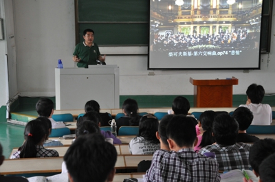 下午四时,安徽广播电视台戏曲广播频率副总监汪源老师《音乐发展与审美感受》的音乐心理报告会,让心理委员们体验了别样的心理培训。音乐源于生活,归于心灵;通过音乐欣赏,去体验感受音乐艺术的真善美;音乐可以有效地缓解压力,驱除烦恼,提高学习效率,提升快乐水平。汪源老师从专业角度娓娓道来,配以欣赏、剖析,使在场的师生放松、享受。