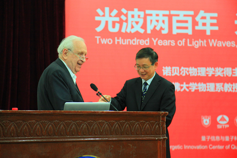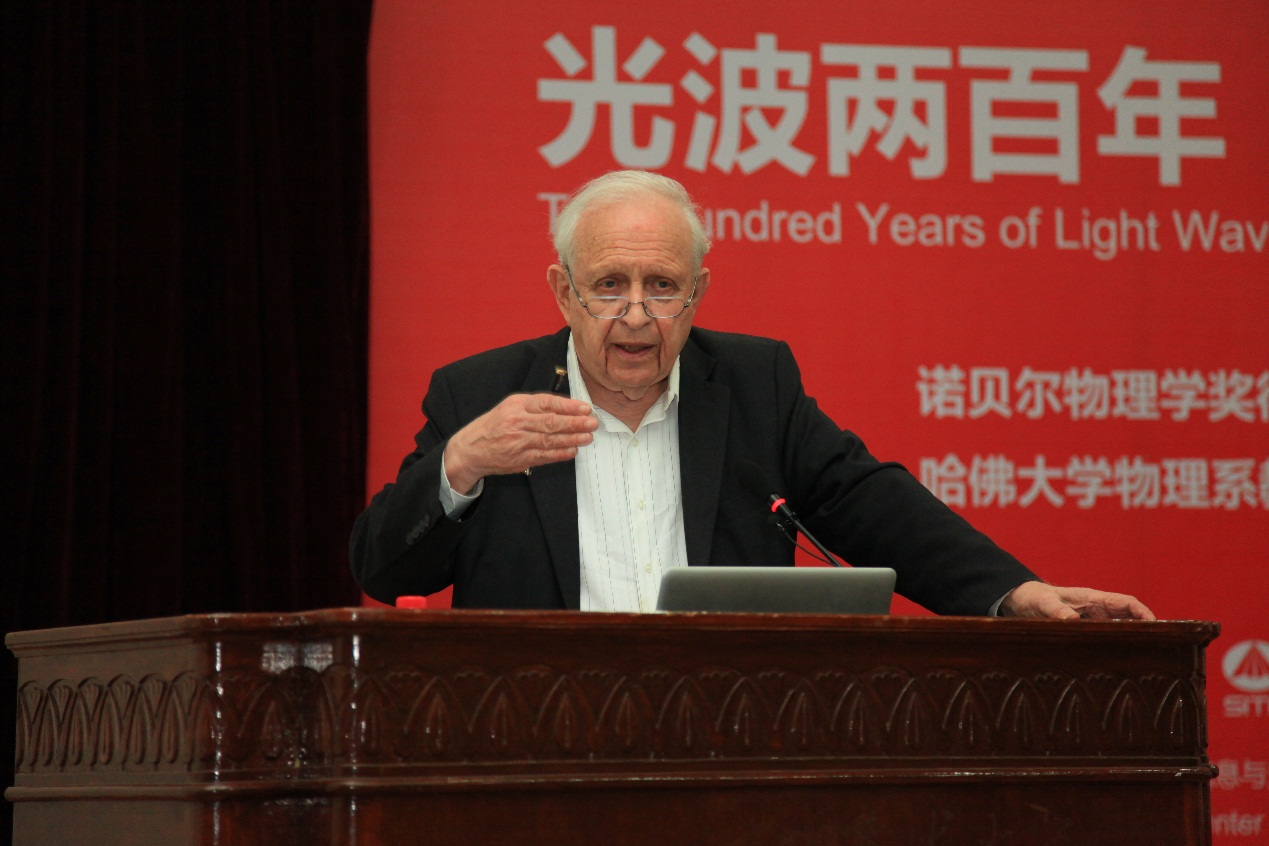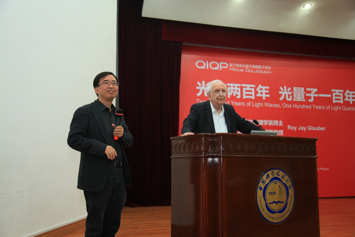 4月18日上午,应量子信息与量子科技前沿协同创新中心“墨子讲坛”(QIQP Micius Colloquium)的邀请,诺贝尔物理学奖获得者Roy J. Glauber教授在中国科大水上报告厅做了题为“Two Hundred Years of Light Waves,One Hundred Years of Light Quanta”的报告。中国科大校长、中心理事长侯建国院士,中心主任潘建伟院士,中科院上海技术物理研究所沈学础院士,北京计算科学研究中心“中科院人才计划”教授朱诗尧,以及400余名中国科大师生参加了报告会。