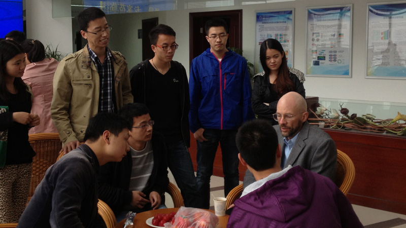 4月18日下午,Shearer教授还做了另一场题为“Observing and modeling elastic scattering in the deep Earth”(观测及模拟地球内部弹性散射体)的邀请报告。报告会后,Shearer教授参加了固体地球物理专业的周五下午茶活动,与多位研究生进行了亲切的交流,对研究生在报告会中及下午茶活动中积极主动的提问和讨论表示出肯定和赞许。