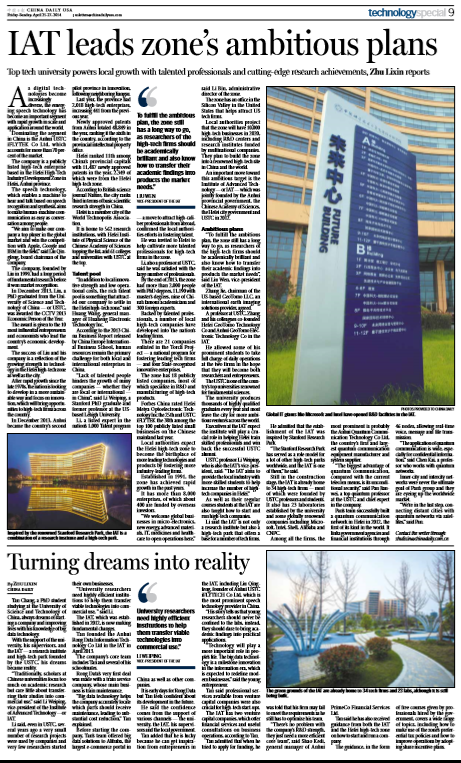 Li said the IAT is not only a research institute but also a high-tech park that offers a base for a number of tech firms.