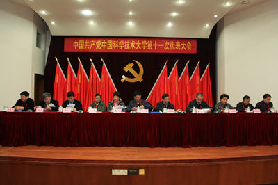开幕式上,窦贤康同志致开幕词,董伟锋宣读中科院党组贺信,程艺代表省委教育工委、教育厅讲话,对中国科大第十一次党代会的召开表示热烈祝贺,并预祝大会圆满成功。此外,北京大学、清华大学、复旦大学等40多家高校党委发来贺信或贺电,向大会的召开表示祝贺。校工会、各民主党派、团委、学生会、研究生会也向大会发来贺信。