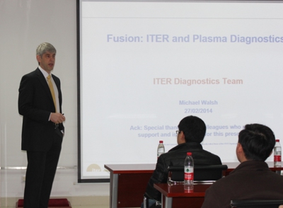 Micheal Walsh教授作为ITER诊断组的负责人于新西兰University College Cork(爱尔兰国立考克大学)取得学士和硕士学位,并于英国Culham Laboratory(卡拉姆研究中心)取得博士学位,在JET和MAST上有非常丰富的工作经验,于2003年开始在ITER工作。马云星博士19岁毕业于中国科大少年班,并于2012年在MIT取得博士学位,次年开始在ITER进行博士后工作。