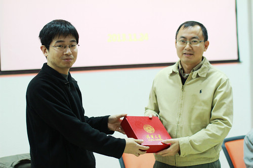随后,在物理学院报告厅,清华学堂物理班向严济慈班赠送了纪念品。