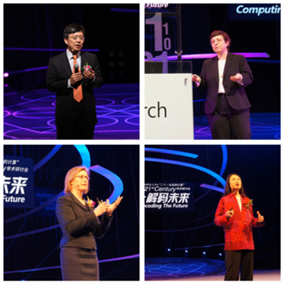 此外,伊利诺伊大学香槟分校计算机系副主任、美国电气电子工程师学会、计算机协会院士KlaraNahrstedt,麻省理工学院媒体实验室情感计算研究组创始人兼主任、美国电气电子工程师学会院士Rosalind Picard,以及微软公司全球资深副总裁沈向洋博士、微软公司全球资深副总裁周以真(Jeannette Wing)博士也在大会上做精彩演讲。大会演讲过程中,演讲嘉宾与现场的学子进行了交流与互动。