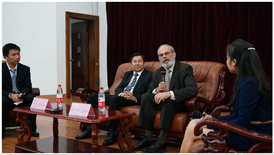 交流访谈中,Eric Grimson教授热心地回答了同学们关心的许多问题。当问到MIT如何成为世界一流大学时,Grimson教授简要地介绍了MIT的发展历史,认为原因在于MIT永远不停地在建设一流的人才队伍,永远保持对科学问题的好奇心和探索精神。在谈到MIT历史上共有78位诺贝尔奖获得者时,Grimson教授说:“目前在校的13位诺贝尔奖获得者当中,有9位是在MIT从助理教授位置做起的,这说明我们的科研体制的确能够成功地把年轻学者培养成世界杰出的科学家”。有学生问及像MIT这样的一流大学是否给予贫困学生很多机会,Grimson教授说,MIT目前有16%的本科学生是他们家中唯一的大学生,贫困学生成才的故事屡见不鲜。他用自己的成长经历鼓励同学们坚持自己的理想,坚持奋斗,相信未来。此外,教授还就MIT的研究生招生、未来计算机产业发展、美国政府关闭等问题与同学们进行了交流。Grimson教授待人亲切和蔼,谈吐风趣幽默,使得现场气氛非常活跃轻松,现场学生聚精会神地听取了Grimson教授分享的学术见解和人生经验。