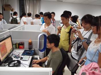 报告会结束后,学院还组织新生参观相关实验室。在参观现场,微纳中心的各位老师及研究生们担任起了讲解员,为新生们详细介绍了中心概况、师资力量、研究内容、应用领域以及所获成果等方面的内容。同学们依次观看了多晶硅晶圆和芯片展柜、FPGA及嵌入式系统演示、集成电路版图演示以及测试探针台等各种芯片设计和高性能测试设备,演示人员们充分考虑到初入高校的新生们对高端科技的理解程度,采用了科普式的介绍方法,对微纳电子在日常生活中的应用场合进行举例,拉近了同学们与高新技术的距离。