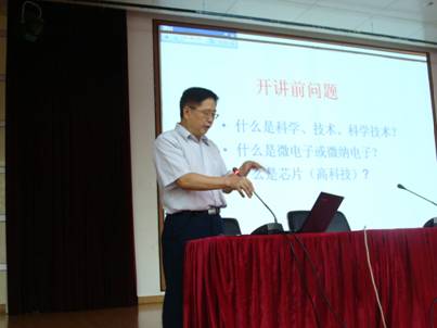 讲座一开始,林福江教授首先向在场观众提出了“什么是高科技”的问题,引导新生们思考高科技对我们日常生活的影响。接着,他对微电子技术的发展做了回顾与展望,为大家分析了集成电路设计行业所面临的机遇与挑战。此外,林教授还详细介绍了23系可以提供的相关领域的教学及科研环境,鼓励新生们在讲座后的参观活动中对此进行更为深入的了解。最后,他以另一个值得思考的问题“为什么设计打造一颗响亮坚固的‘中国芯’这么难”作为讲座的结束,使同学们意识到自己作为相关专业大学生所应当承担的重担。