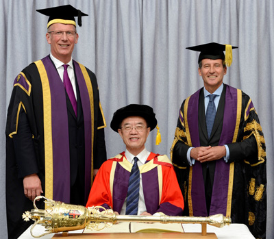 左:拉夫堡大学校长Robert Allison教授;中:范维澄院士;右:塞巴斯蒂安?科,科(Sebastian Newbold Coe, Baron Coe)男爵,2012伦敦奥运会组委会主席,拉夫堡大学副校监(Pro-Chancellor of Loughborough University)