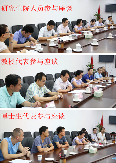 座谈会分博士生导师代表座谈和博士生代表座谈两场进行。参加导师座谈的有来自数学、物理、化学、生命科学、国家同步辐射实验室、微尺度物质科学国家实验室等单位导师代表,他们围绕深化博士生招生计划管理改革这一核心议题,从提升一流大学博士生教育自主权、扩大高水平大学博士培养规模、国际一流大学博士生招生与培养机制建设等方面各抒己见,畅所欲言。在博士生代表座谈中,规划司调研团听取了来自各学院、各年级的数位博士生代表对择优机制、资助体系、课程教学、就业预期等方面的意见和建议。
