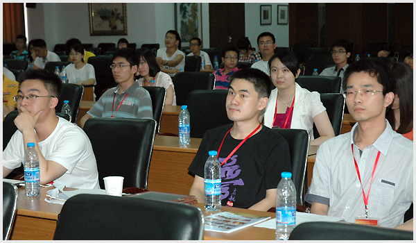 在为期六天的交流会上,各学校学生代表分别做了学术报告,展示人才培养成果,交流人才培养经验。数学科学学院陈卿副院长主持了7月2日下午的大研计划项目座谈会。席间,陈发来教授介绍了科大数学学院在本科生培养方面的经验,各学校参会代表分别发言,对各自的基地人才培养模式、特点进行了简要介绍。会上还对交流会的办会宗旨、形式以及内容进行了点评和讨论。各基地单位都对中国科大提出举办首届交流会的创意表示肯定,并对科大能够为各基地师生提供这样一个很好的交流机会表示感谢。