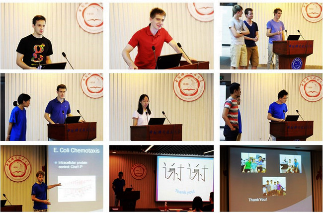 随后,营员对科研实践活动成果进行了展示。全部营员根据研究兴趣方向共分为九组,组内跨国家、跨高校进行合作,在研讨中共同进步。他们的研究领域涉及量子点太阳能电池、量子计算、天体物理理论研究、高维空间理论计算、光学、等离子体物理等方向,通过与所在实验室的科大同学交流使他们接触到了这些研究领域的前沿进展,亲自参与到实验中来,在学习与实践中取得进步。营员们的报告有的以一个简单的小问题入手,吸引大家的注意力,深入浅出的将研究领域用简明的语言阐述出来;有的将自己在实验室的实验过程以图片、视频、动画等形式生动形象的展现出来,妙趣横生。