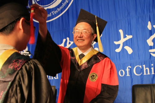 侯建国校长还为现场的毕业生们讲述了《自然》杂志上刊登的5个时间跨度漫长的科学实验,认为重大成果的取得往往需要一个很长的过程。他希望,同学们今后无论从事什么样的事业,都需要有足够的耐心和信心,要经得住时间的考验,耐得住寂寞、经得起挫折,通过执着的努力去成就最好的自己。最后,他祝福即将毕业的各位同学,作为科大撒向社会的种子,在不同的土壤里扎根、成长,以聪明才智实现自己的人生价值,为国家、为母校做出积极的贡献。