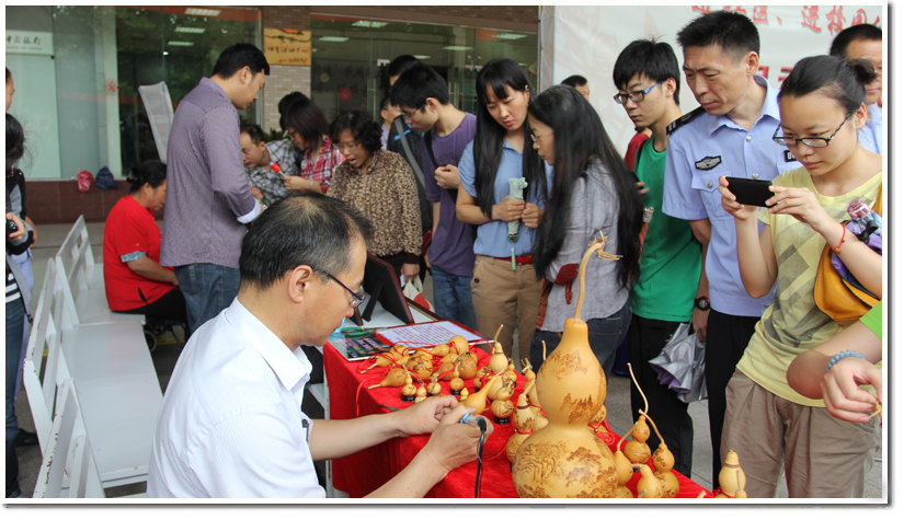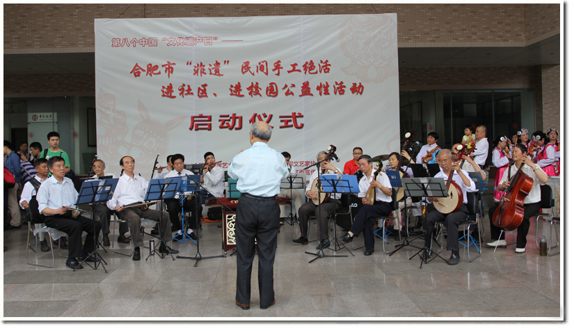 合肥是首批国家级文化与科技融合示范基地,为了推进文化与科技融合的“点线对接”,6月7日上午,由合肥市文联、市民协主办、中国科大团委、包河区委宣传部协办的“合肥市非遗民间手工绝活进社区、进校园公益性活动”启动仪式在科大东区活动中心广场举行,作为第八个“文化遗产日”期间非遗宣传的重头戏,这一活动拉开了合肥市系列活动的序幕。我校党委副书记鹿明、合肥市政协副主席金其武、安徽省文联副主席、安徽省民间文艺家协会主席张甦等出席了启动仪式。仪式由合肥市文联党组成员、合肥市文联副主席刘晓明主持。