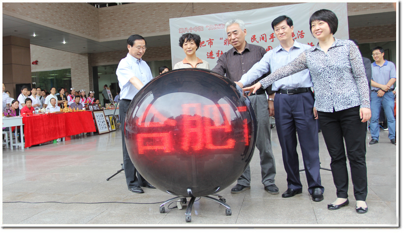 启动仪式上,包河区委常委、宣传部长王海霞与合肥市文联党组书记陈飚讲话,高度肯定了合肥市民间手工绝活进社区、进校园公益活动的意义。随后与会领导共同启动了开幕水晶球。