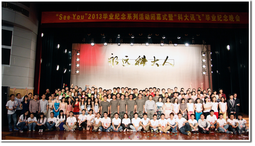 6月9日晚,主题为“永远科大人”的“See You2013毕业纪念系列活动闭幕式暨“科大讯飞”毕业纪念晚会在东区大礼堂隆重举行。校党委副书记鹿明,机关有关部门负责人、各院系学工负责人和分团委团总支老师来到了晚会现场,与我校2013届毕业生共抒毕业情怀。