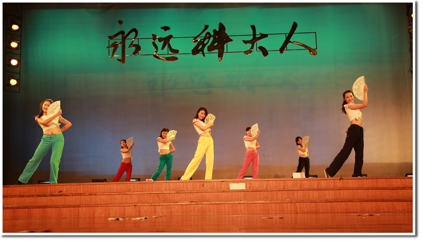 接着是篇章“那些年我们追过的女孩”,生院带来的舞蹈《YOUR BODY》热情洋溢的舞姿表现着青春无限的活力;相声《漫谈科大女生》让大家欢笑连连;双节棍表演《棍道疾风》则将科大男生独特的阳刚之气展示得淋漓尽致;接着进行了传统节目《T恤走秀》,生动地展示了各学院各社团的创意和风采;紧下来的微博互动将观众的情绪又推向了一个高潮。在第三篇章“Three idiots”中,物理学院舞蹈《咏春》展现了我校女生特有的风姿与柔美,魔术《魔手神彩》给大家带来神奇的魔术表演,现场观众时而屏气凝神瞪大了眼睛,时而爆发出雷鸣般的掌声;接着视频《毕业心声》让现场无数观众热泪盈眶。