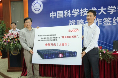 根据协议,曙光公司首期将提供价值300万元的服务器、存储、集群软件相关软硬件训练系统,作为教育培训基地的基础实验平台。同时,双方在争取承办和参加国际国内高水平大学生超算赛事方面开展合作,力争将大学生超算竞赛办成中国大学生计算机系统与应用创新实践教育的一项品牌活动。此外,曙光公司还将为中国科大提供科研成果转化基地。