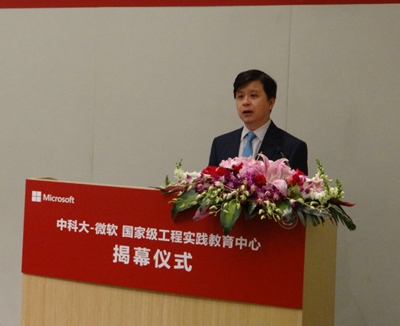 微软亚洲研究院院长洪小文简要回顾了双方合作的历程。他指出,中国科大是微软在中国合作最久、最深的高校,自1998年以来,在高素质人才培养、基础研究等诸多方面紧密合作、大胆尝试,取得了丰硕成果,共建了中国科学技术大学多媒体计算与通信教育部-微软重点实验室、中国科大-微软联合培养人才新模式实验区。在科大即将迎来建校55周年、微软亚洲研究院建院15周年之际,希望双方更加深入紧密合作,争取把中心建设成为同类高校领先、具有示范辐射作用的国家级工程实践教育中心。