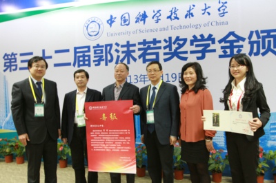 4月19日下午,第32届郭沫若奖学金颁奖典礼在我校东活五楼学术报告厅隆重举行,全校各院系共计33名本科生荣获该奖项。侯建国校长出席典礼并讲话,为获奖学生一一颁奖。特邀嘉宾潘建伟院士应邀作主旨演讲,校友新创基金会代表刘志峰在颁奖典礼上发言。本届郭沫若奖学金获得者及其家长、中学校长、中学和大学老师参加了颁奖典礼。颁奖典礼由校党委副书记鹿明主持。